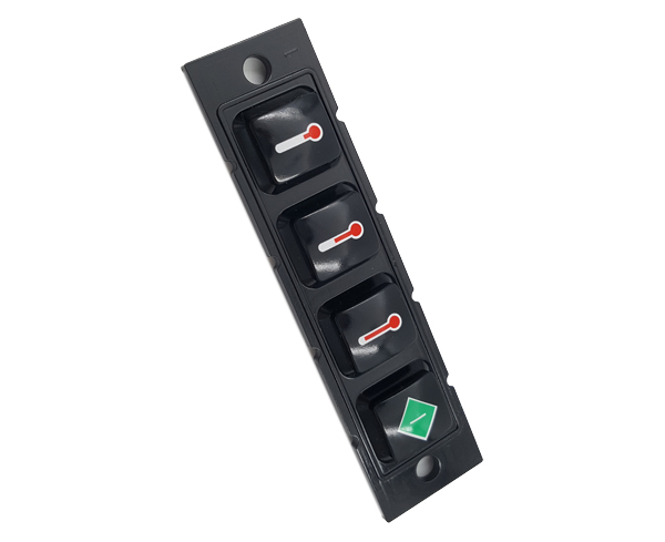 0.25mm及以下的塑料基板稱為薄膜,主要用作薄膜開關的面板層。背面印有各種指示性圖案和文字,指示對應開關鍵位置的操作區(qū)域。厚度選擇要根據面板和按鍵的大小而定,材質厚,觸感增大,響應慢;材質太薄,摸起來手感差,回彈不明顯。 0.25mm以上的厚度稱為片材,不適用于三維按鍵成型??勺鳛闊o按鍵操作區(qū)的指示牌面板,也可作為薄膜開關的襯板,提高其硬度。